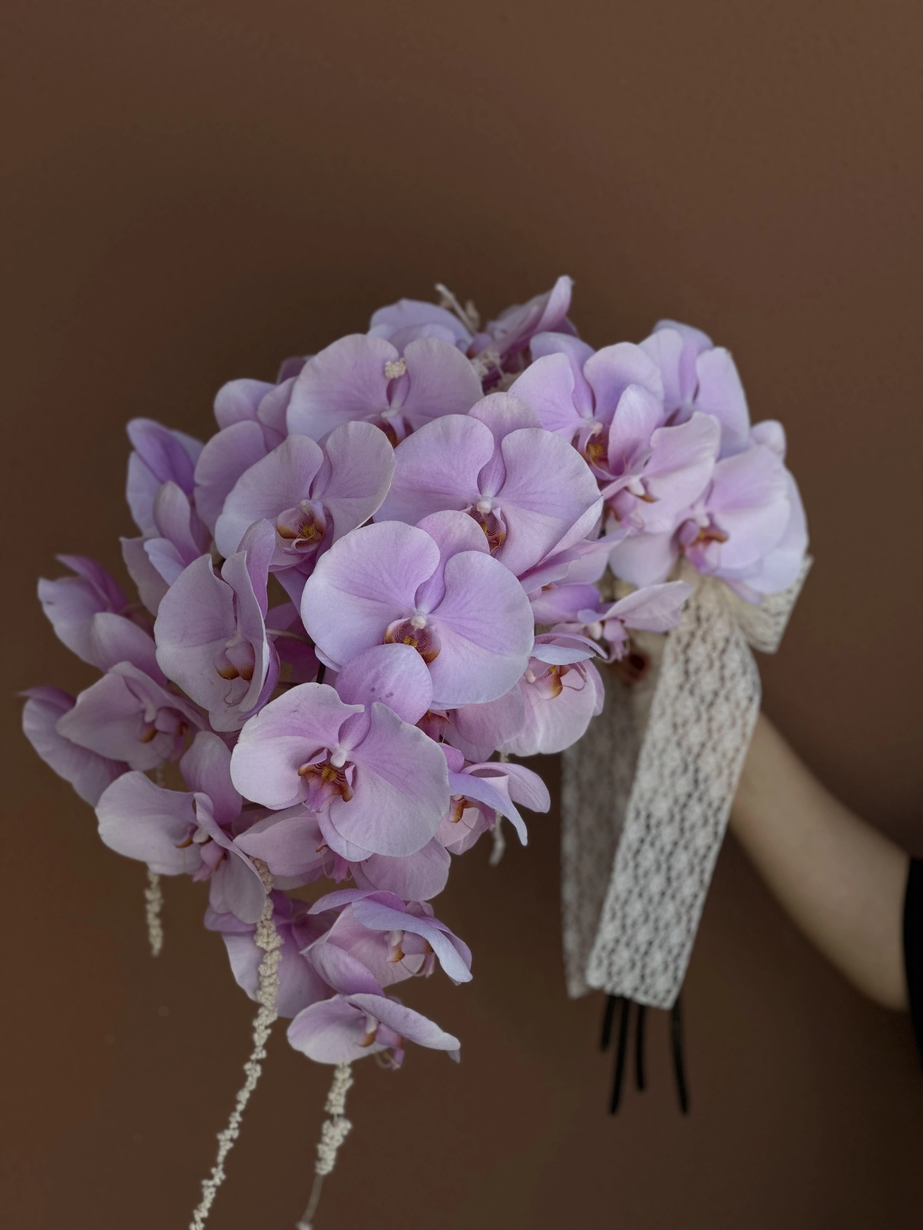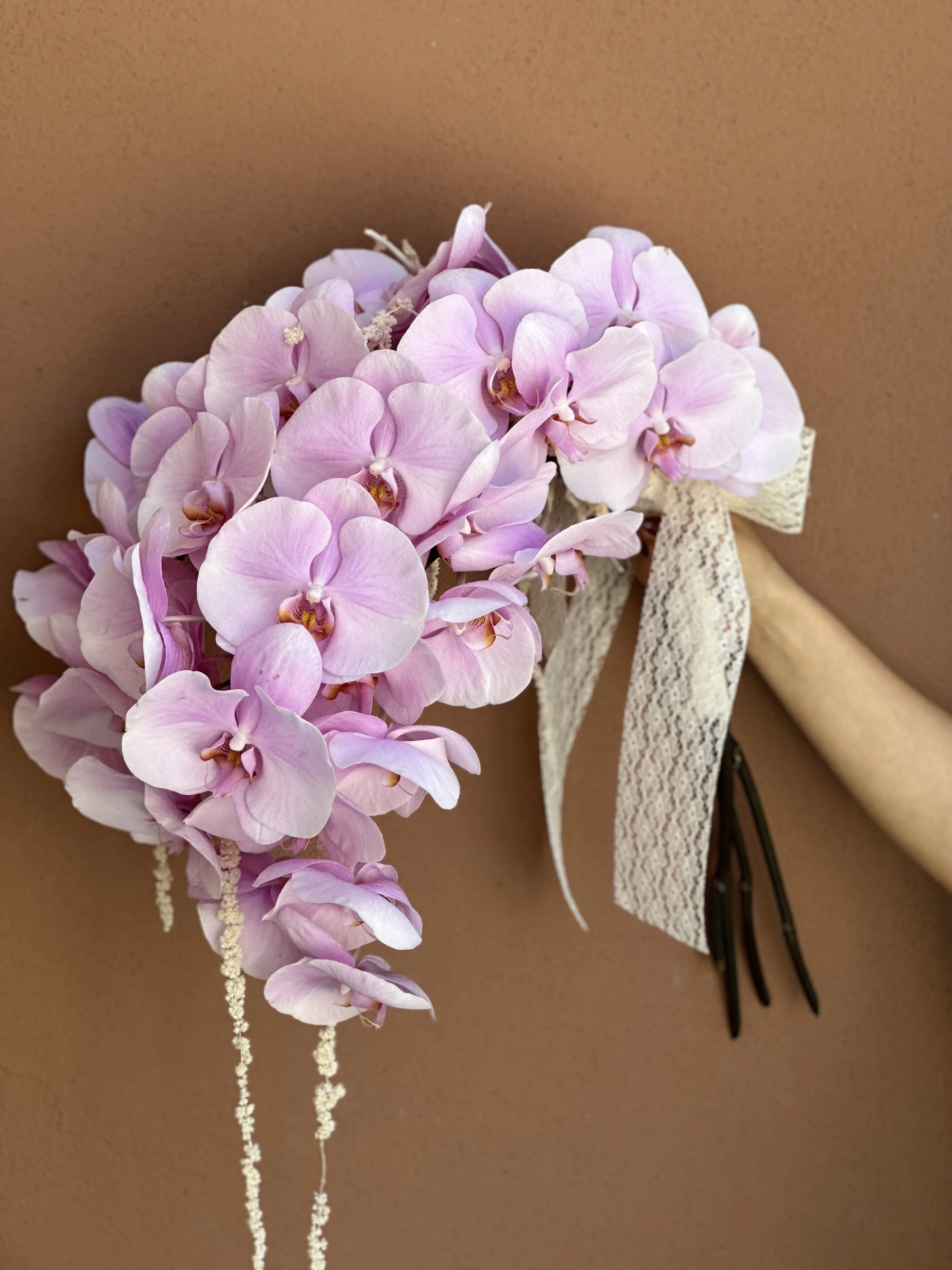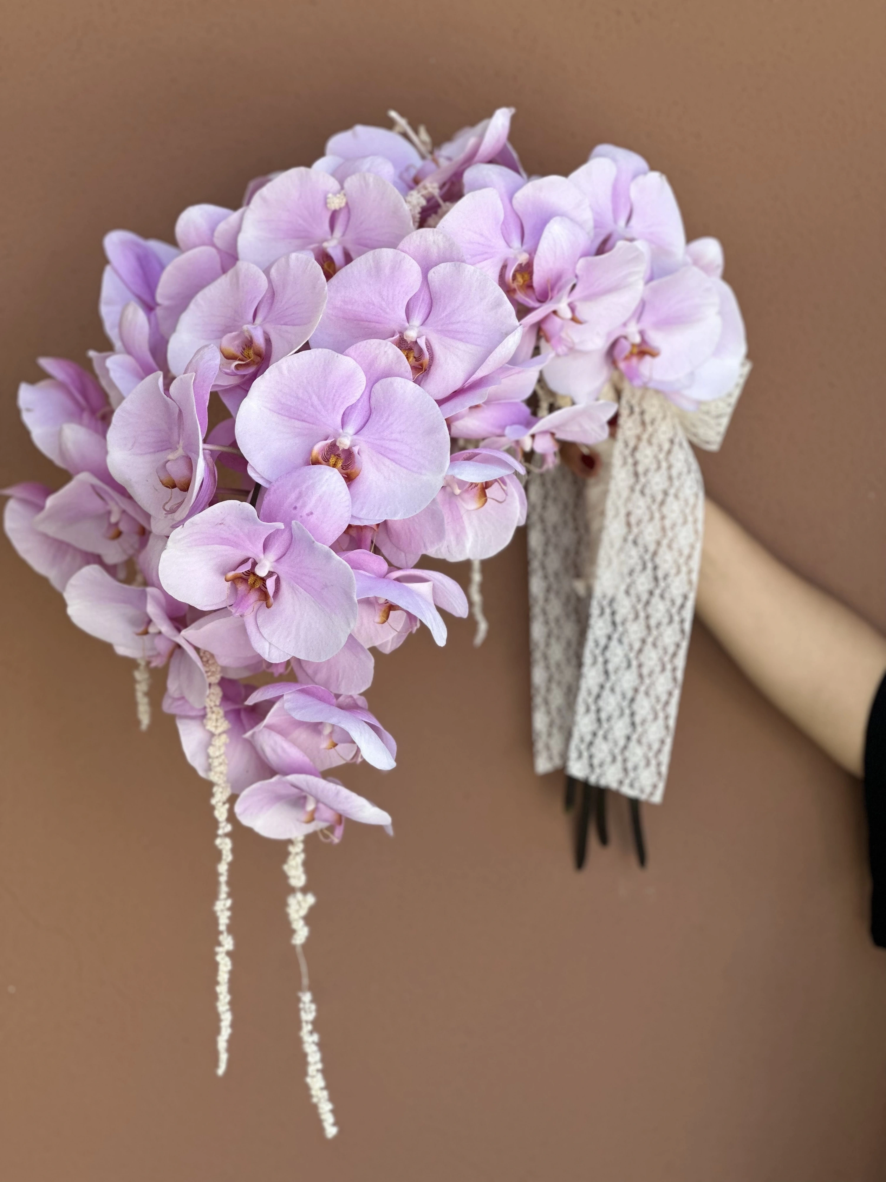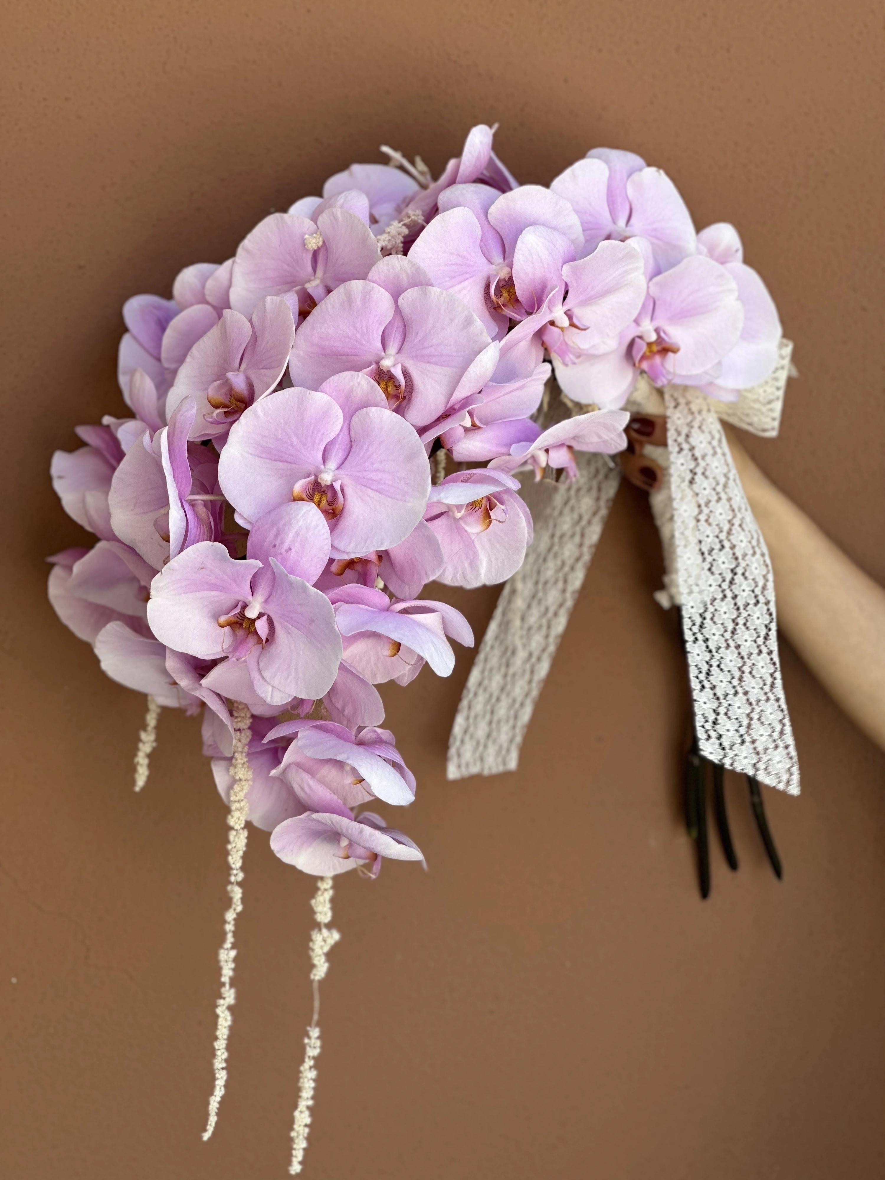 تم استخدام 4 أوركيد جامبو ساقط وأمارانتوس أبيض مدهش في باقتنا الخاصة.