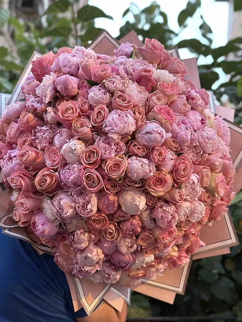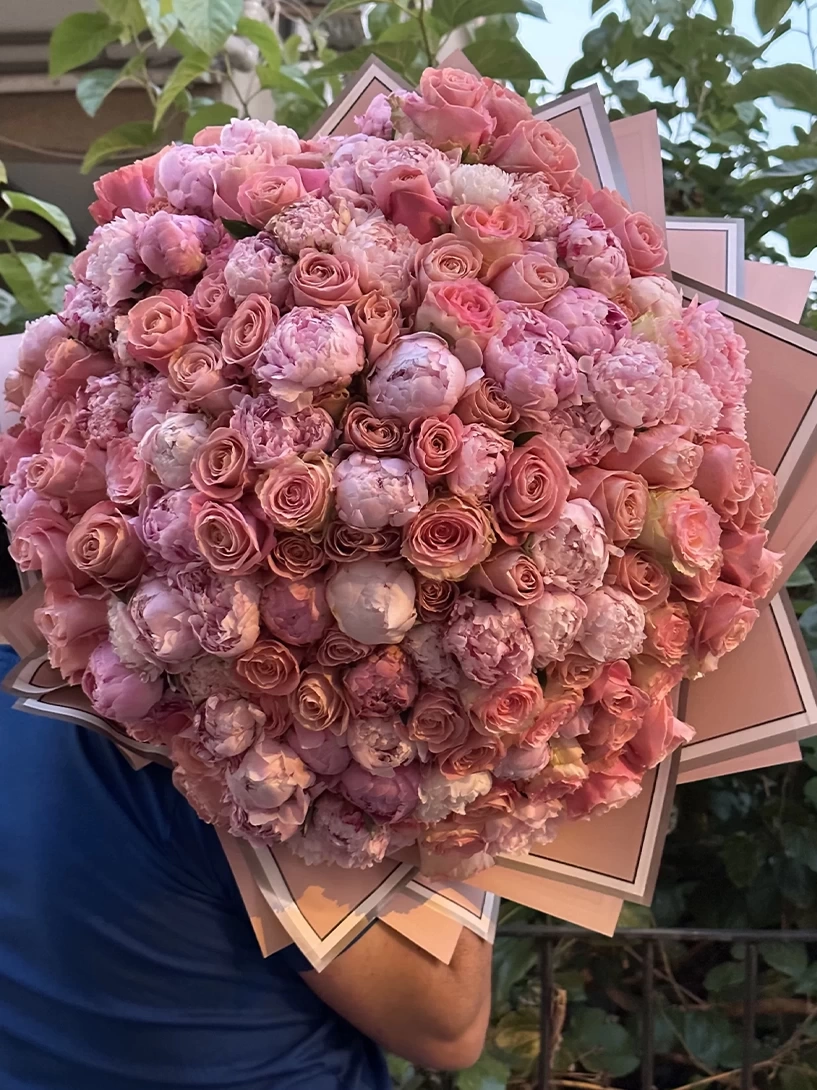 باقة ورود هيرموسا الفاوانيا الوردية ترمز إلى الحب والوفاء بمظهرها الفاخر المؤلف من 201 زهرة. تمتزج رومانسية الدرجات الوردية مع النبل الأنيق لورود هيرموسا لتقدِّم بديلاً متحفا للإهداء في المناسبات الخاصة ليأسر قلوب أحبائكم. تصبح تصميماً لا يُنسى للحظات المميزة.